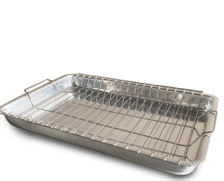 Assadeira Com Grelha Suspensa Retangular Forma Grande Para Assar Aço Cromado 2 em 1, ideal para grelhar qualquer tipo de alimento e retirando a grelha pode ser usada como forma para assar bolo e outras receitas, muito mais praticidade para o seu dia a dia.