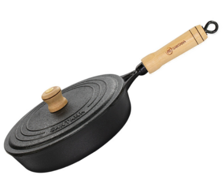 Frigideira de ferro com tampa de ferro cabo de madeira numero22